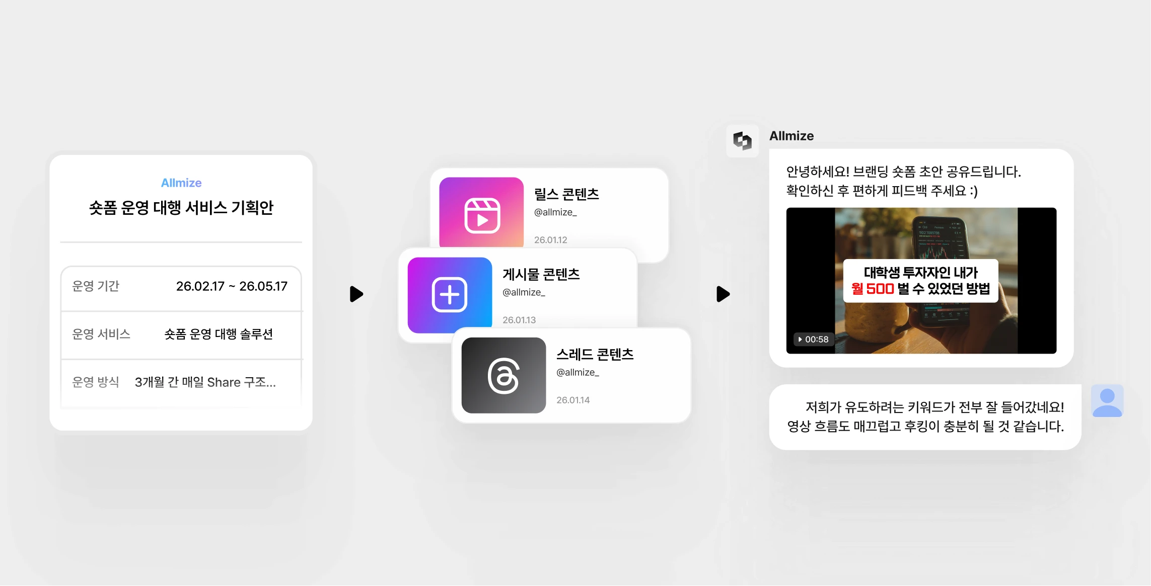 "매달 콘텐츠 20개 만들려면 야근이 기본이에요. 그런데 막상 올리면 반응도 없고... 뭐가 문제인지 모르겠어요."