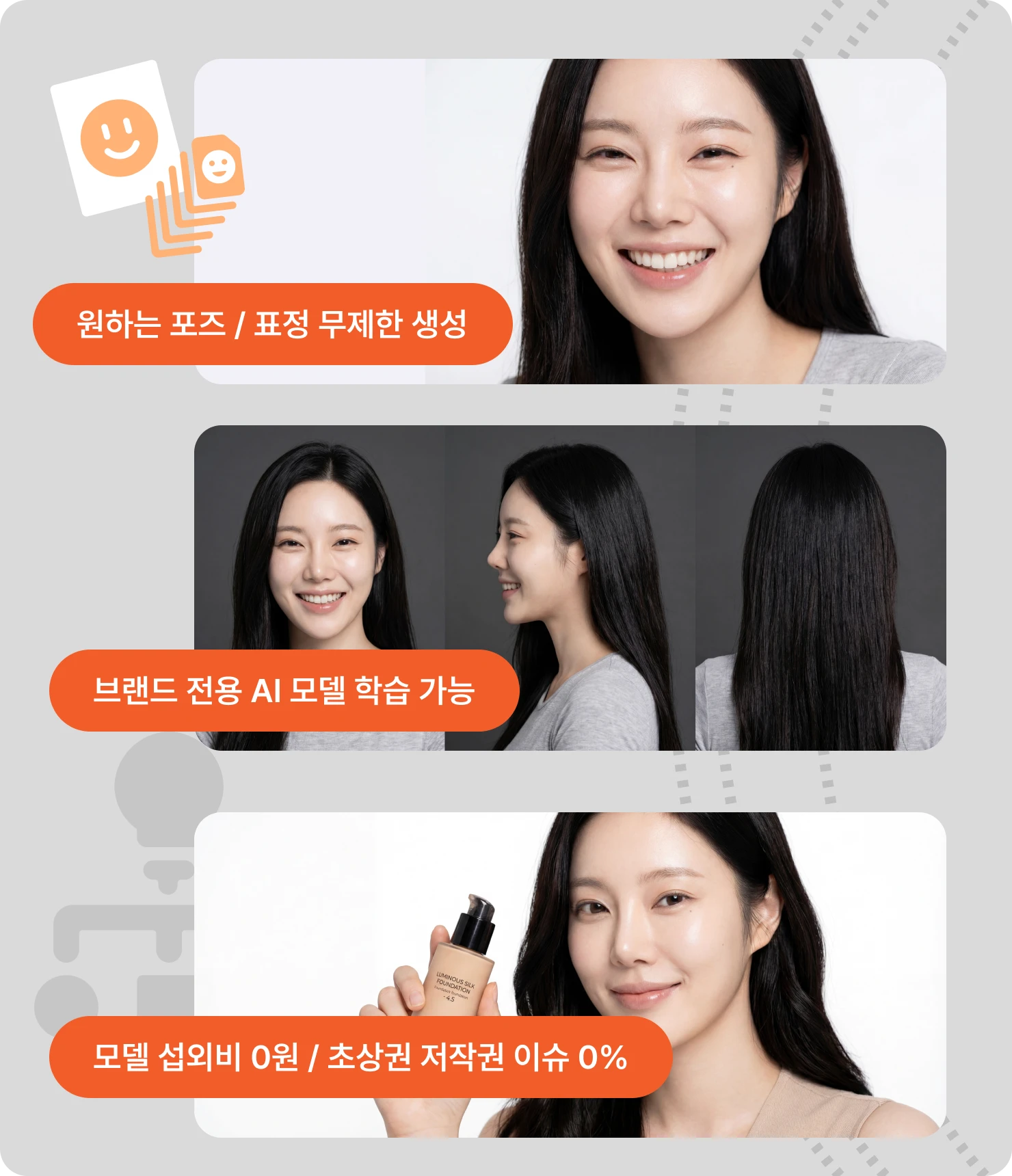 자율성 ) 브랜드 전용 AI 모델 학습을 통한 무제한 포즈 및 배경 커스터마이징 가능